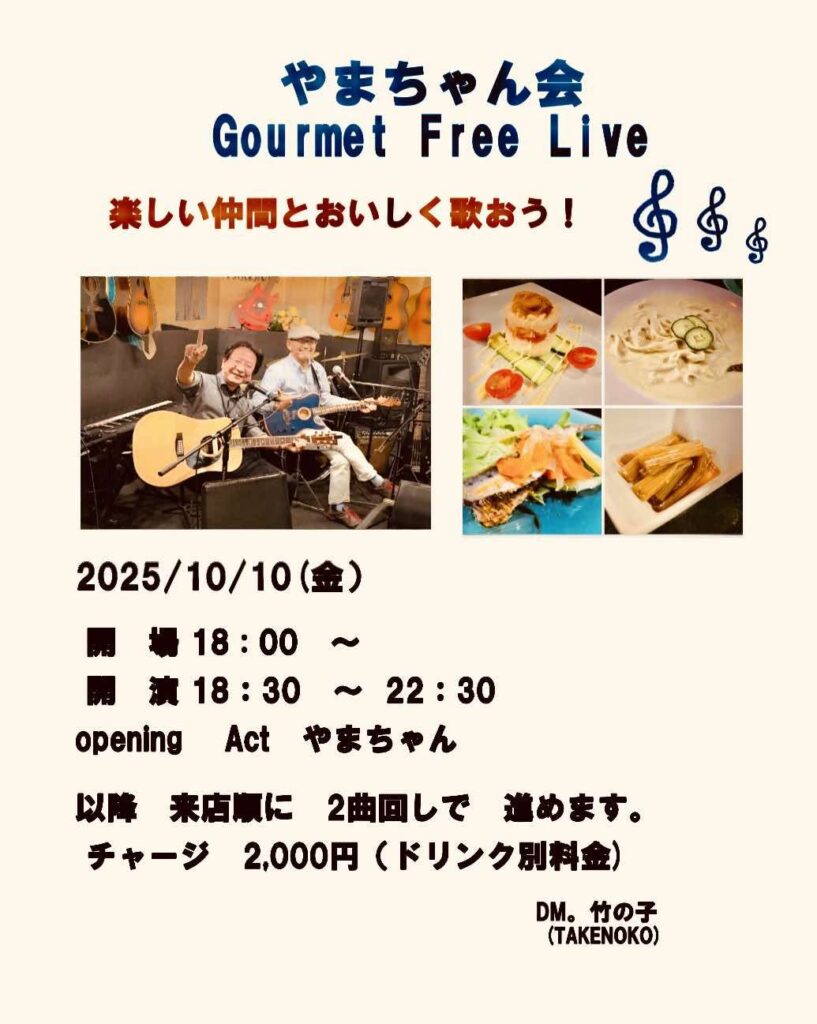 定期的に楽器演奏によって歌える企画を行っています。フォークやジャズ、カントリーなど洋楽も歌える店です。