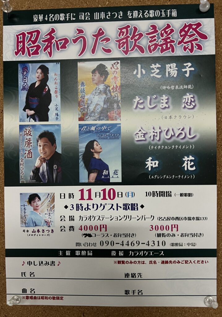名古屋市西区で営業している老舗、カラオケ喫茶グリーンパークでは多数のイベントを企画し定期的に開催しています。本格的に歌を習いたい人、大歓迎お待ちしております。
