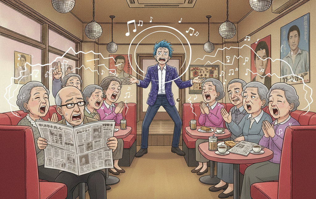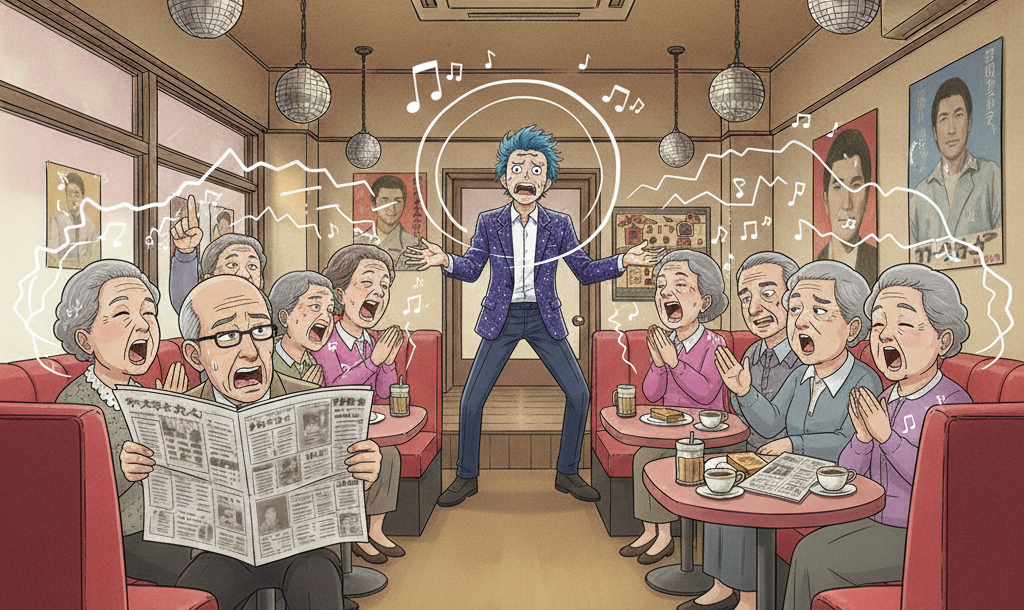カラオケ喫茶の常連さんたちは若いころ歌う機会があまりなく60歳以降定年を迎えてから歌うことを始めた人も結構多い。なので昭和、平成時代に大流行した曲を知らない人が多い。彼らは知らない曲に対して否定的だ。ましてやポップス系となると…